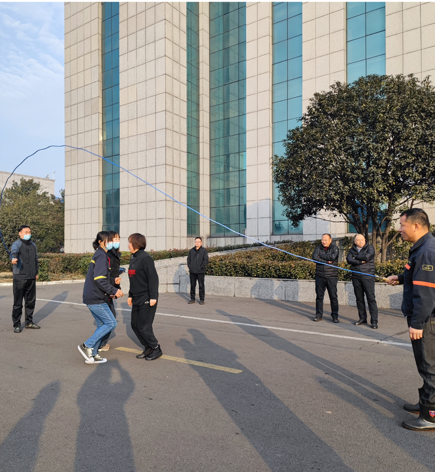 新郑精煤庆元旦跳绳比赛在该公司办公楼前举行。这次比赛分跳大绳和跳小绳两种方式,个人团体均可参与。选手们个个凝神聚气,大家同心协力,把一根绳子悠成花,人群中欢呼声笑声响成一片。 (盛秀丽)