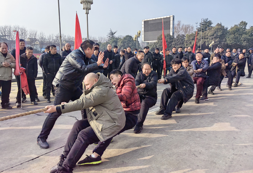 新郑煤电公司在办公楼前举办“庆元旦”拔河比赛,来自各区队的18支代表队参加了比赛。比赛中,职工们心往一处想,劲往一处使,喊着整齐划一的号子,为职工上演了一场又一场激动人心、扣人心弦的争夺战。在场的观众也热情高涨,整个广场掌声、加油声、欢呼声不绝于耳。 (徐静)